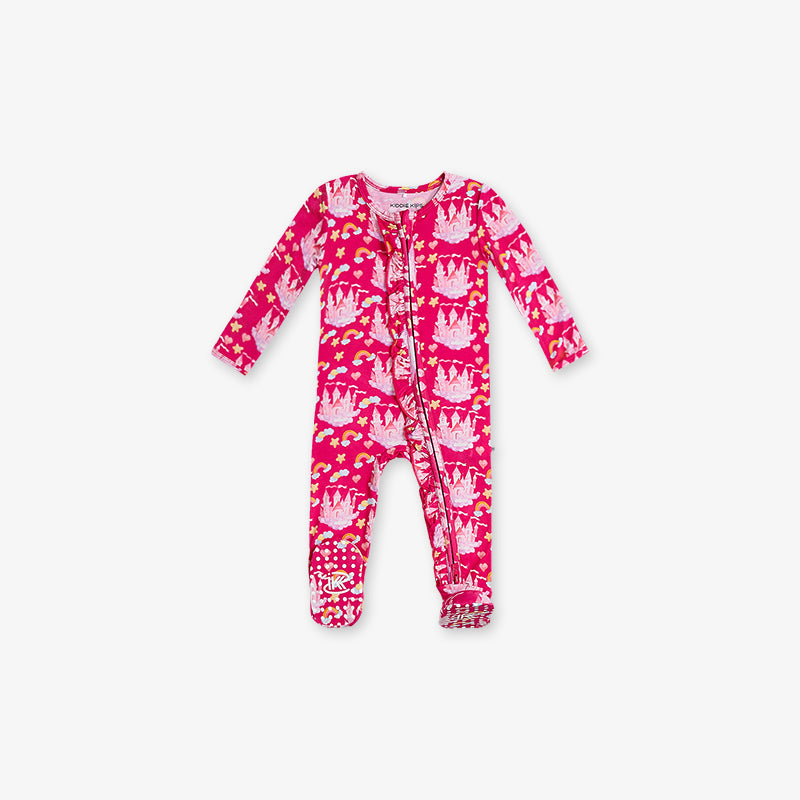 One Piece PJ with Ruffles and Mittens - Castle Print